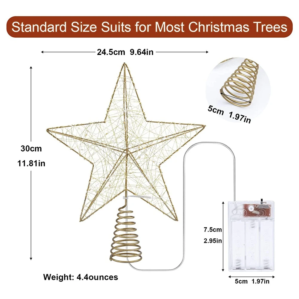 The entire tree top is made of lightweight environmentally friendly metal, which is more stable and durable. The metal star can be easily fixed on the top of the tree, and it is not easy to be damaged or deformed.