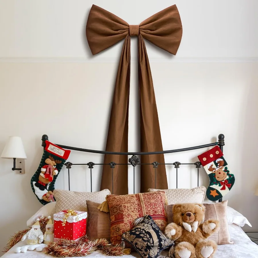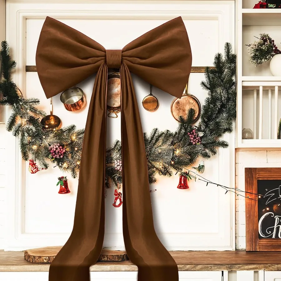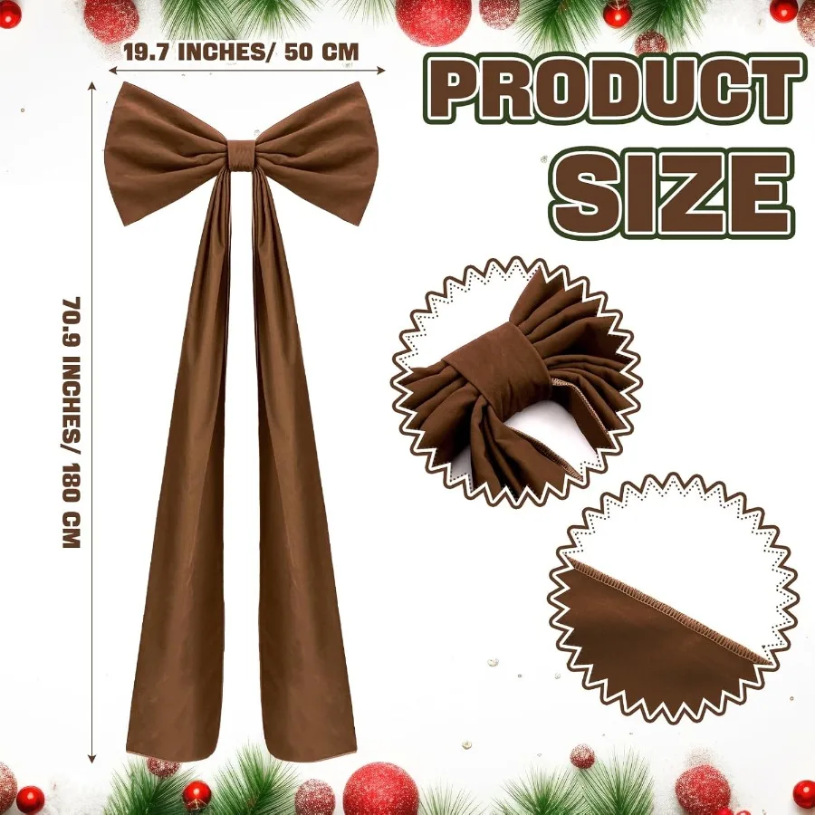 Classic Design: This large brown bow decoration adopts a classic bow design, which is reminiscent of traditional holiday celebrations, exuding a warm and nostalgic atmosphere; It comes with a fixing strap for easy use, saving time and energy while adding charm to your space