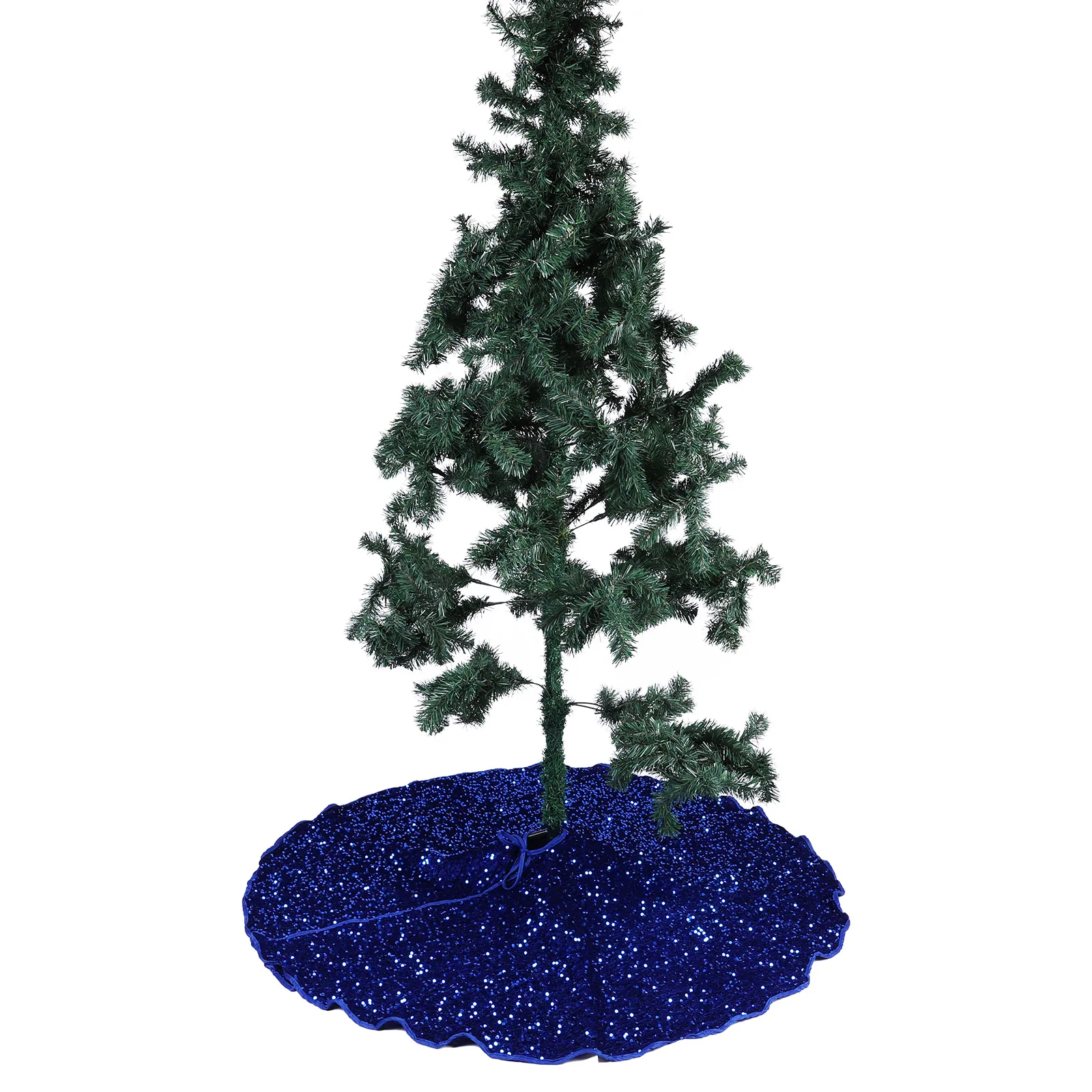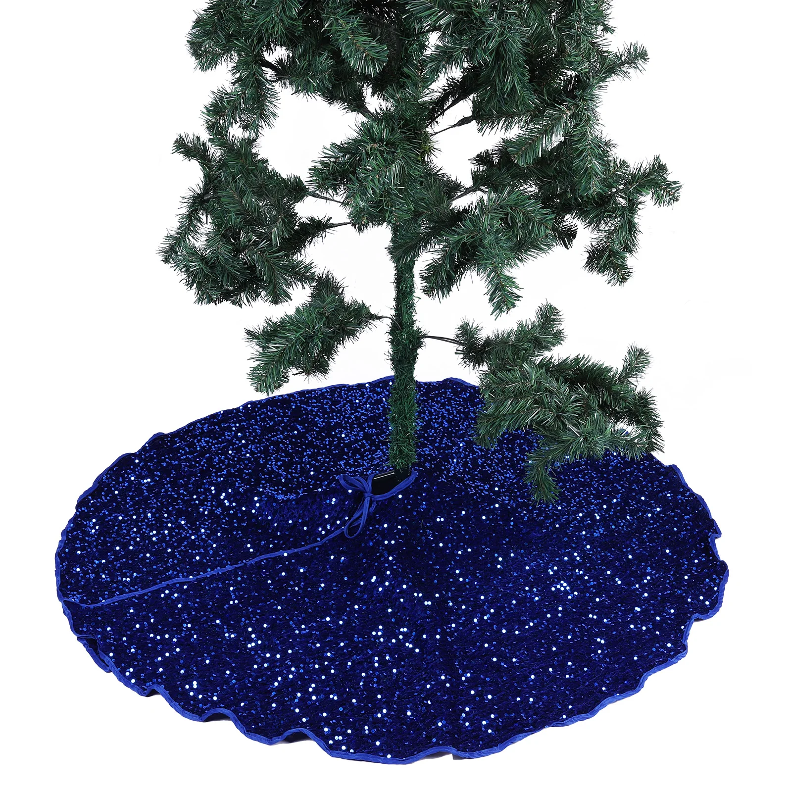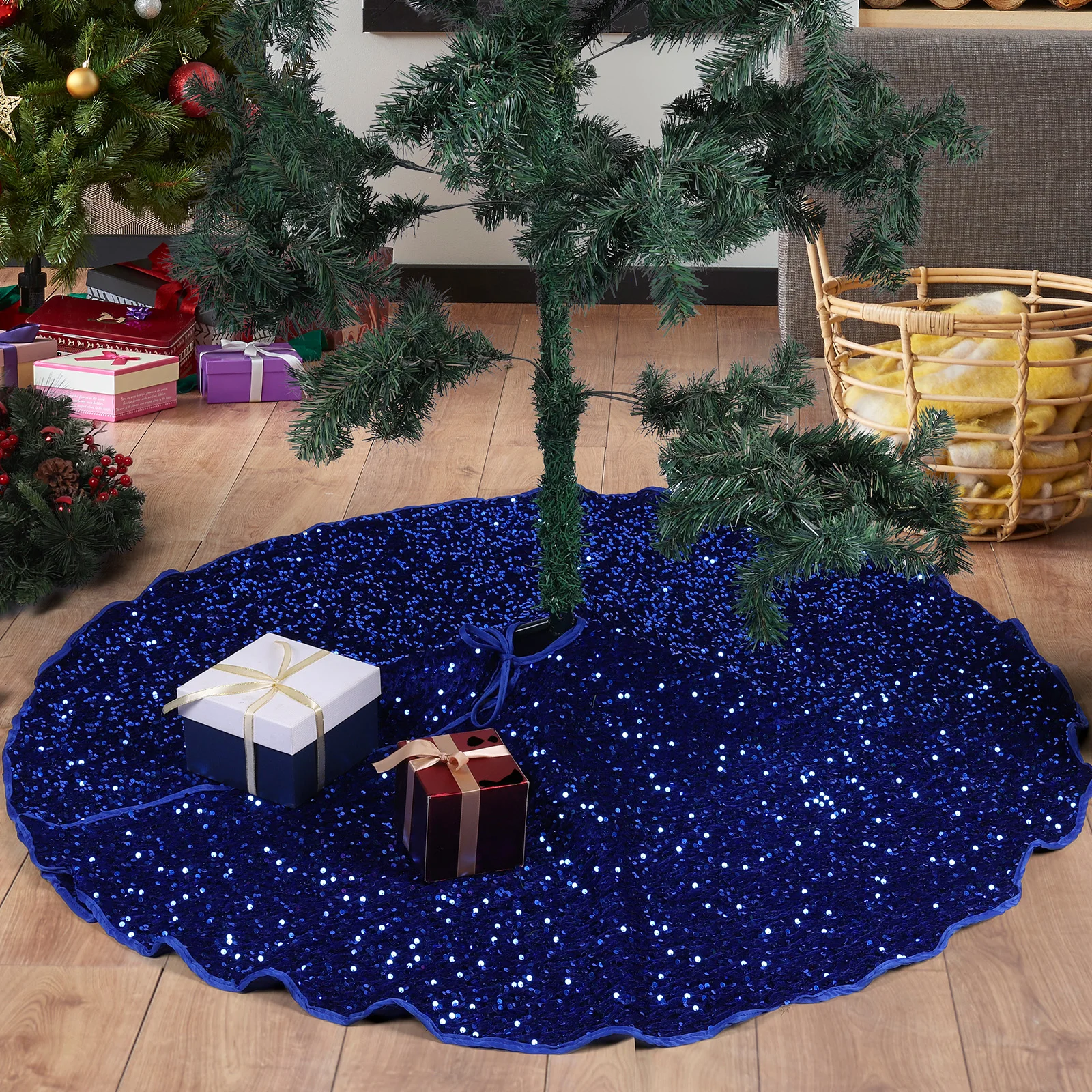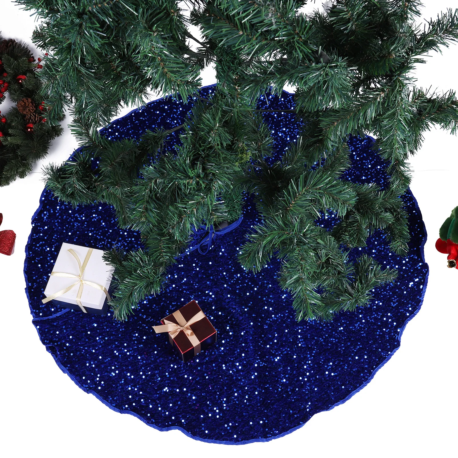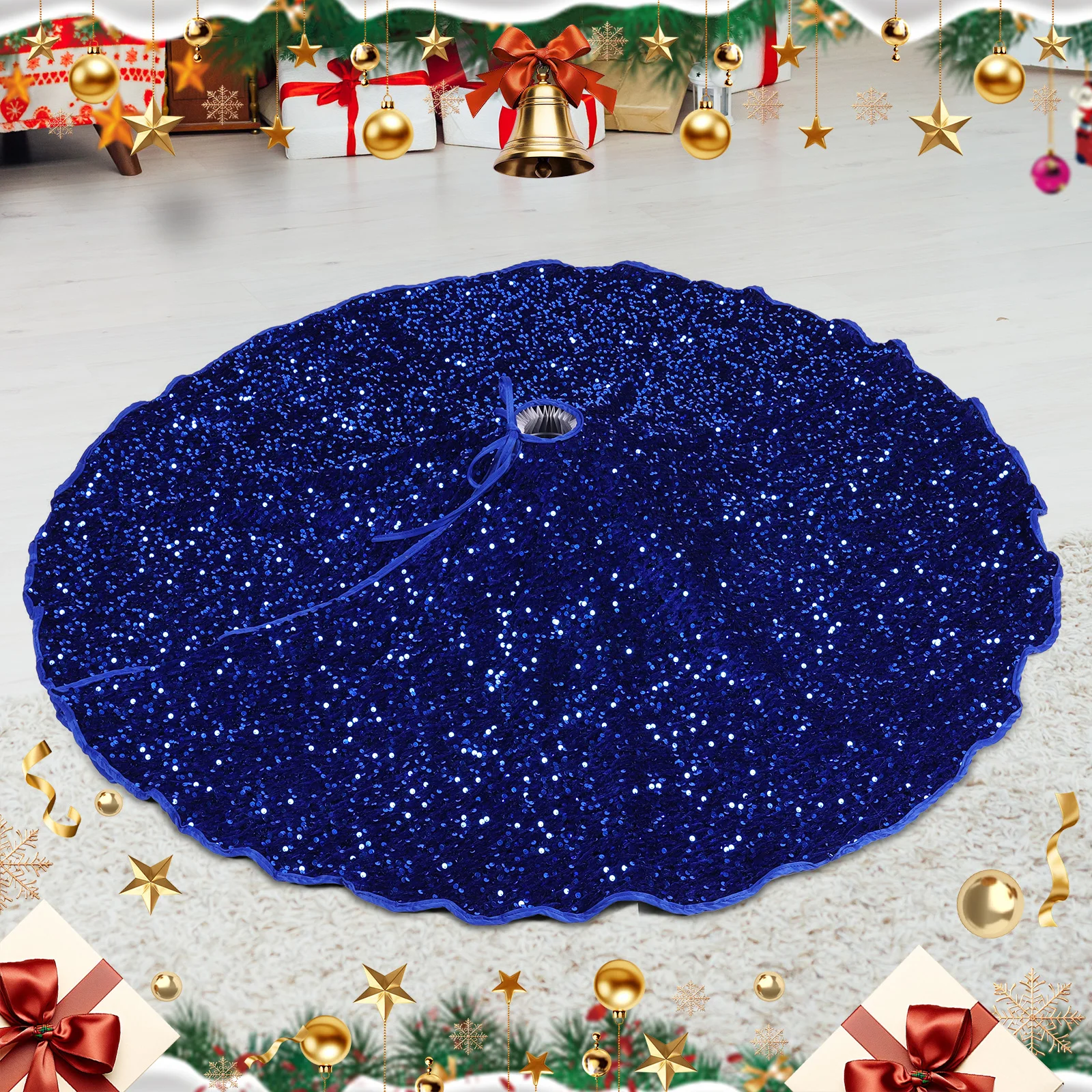 47.5In Christmas Tree Skirt Blue Sequins Tree Skirts for Xmas Tree Decoration round Sparkling Holiday Tree Ornament for New Year