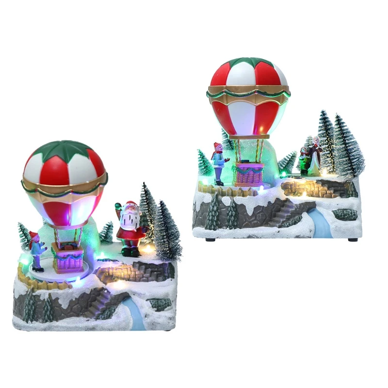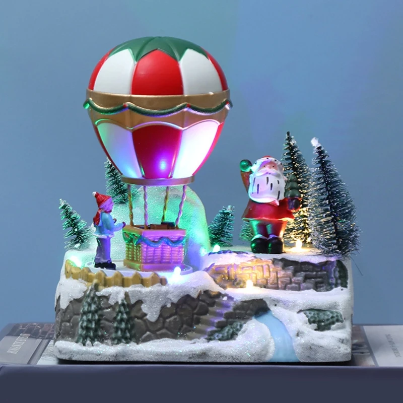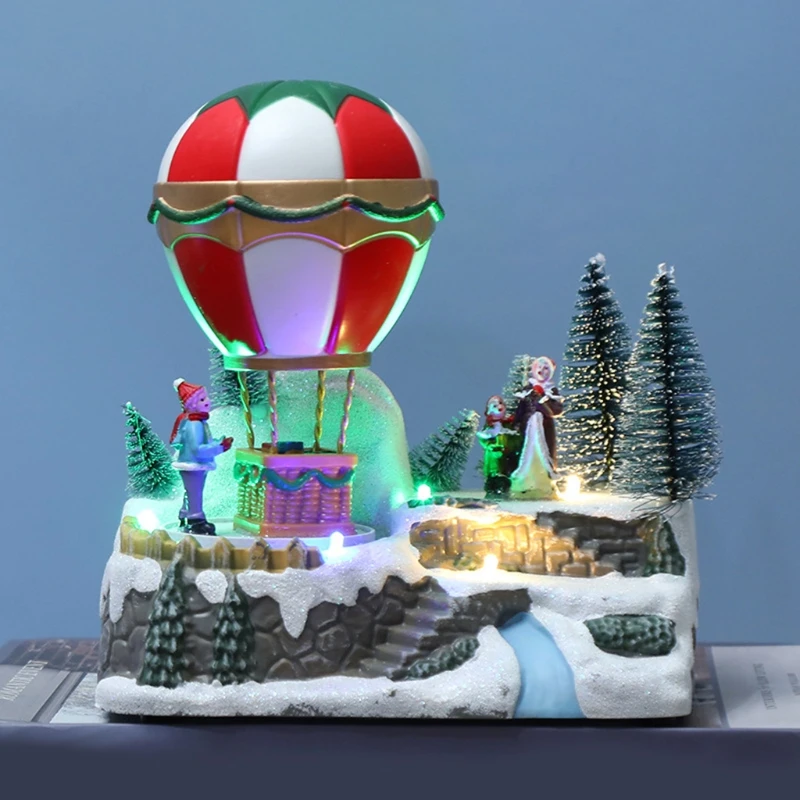 Christmas LED Lighted Snow House Decoration with Music Revolving Hot Air Balloon USB Battery Operated Animated Xmas Dropshipping