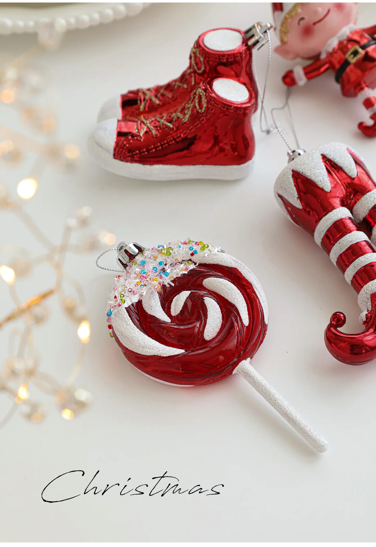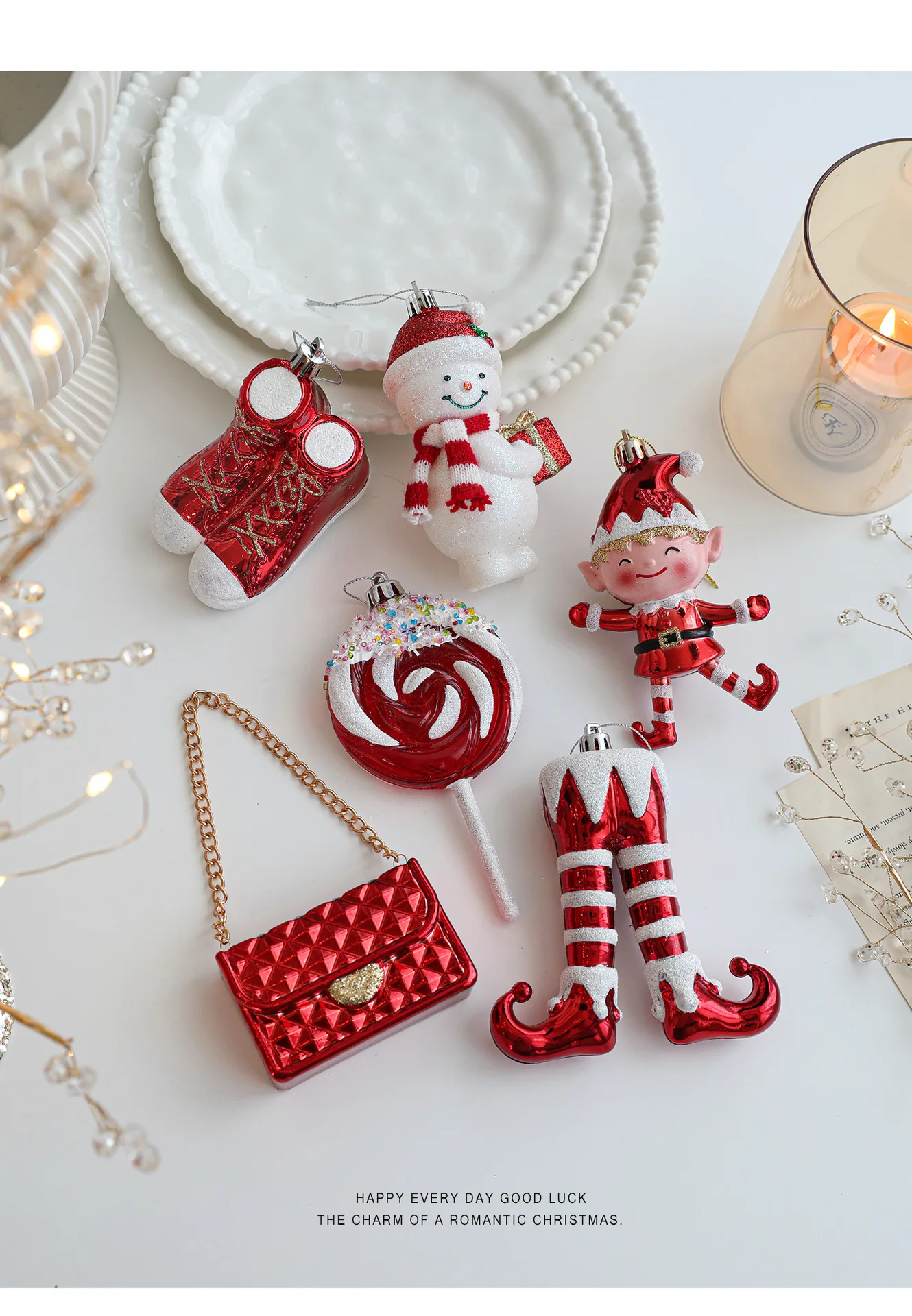 Christmas Pendant Red White Cartoon Plastic Christmas Tree Pendant DIY Vertical Pendant Family Christmas Atmosphere Decoration