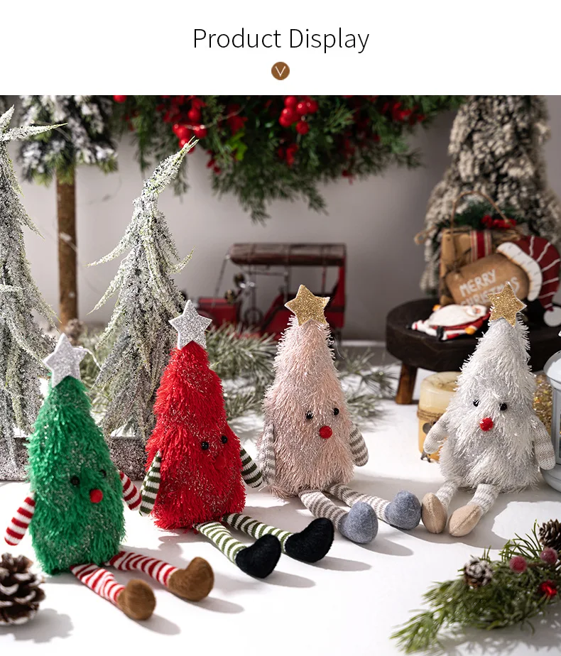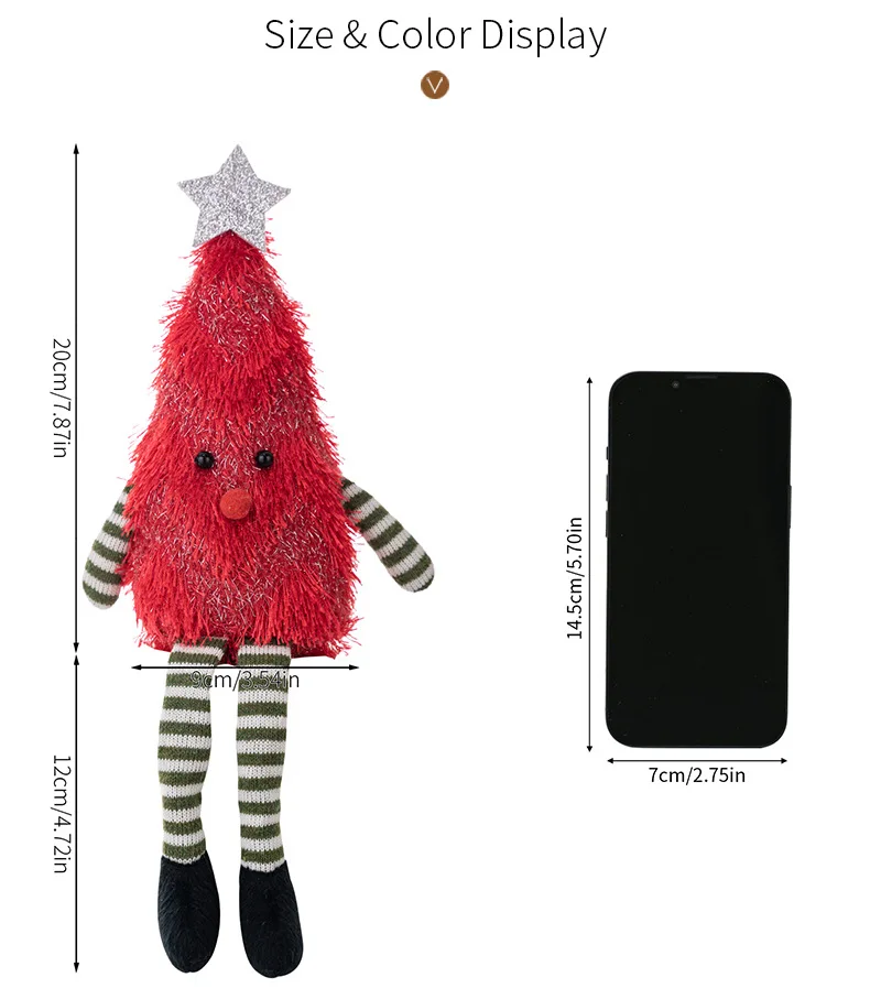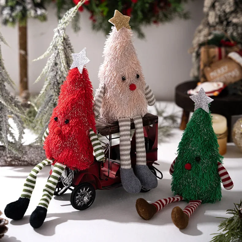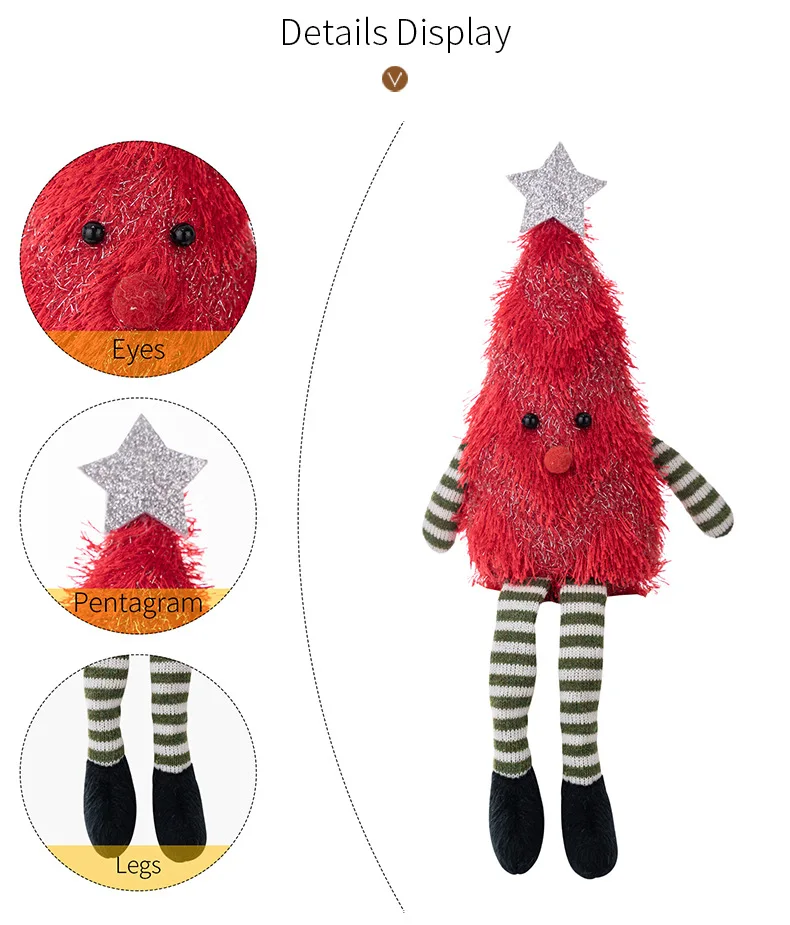 Cute Xmas Tree Plush Ornaments Long Striped Legs Soft Plush Doll for Christmas Home Party Decoration Stocking Stuffers Gifts